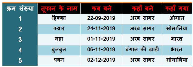 2019 में रिकॉर्ड साइक्लोन विकसित हुए थे। मॉनसून से पहले भी और मॉनसून के बाद भी। मॉनसून के बाद बनने वाले तूफान का विवरण: