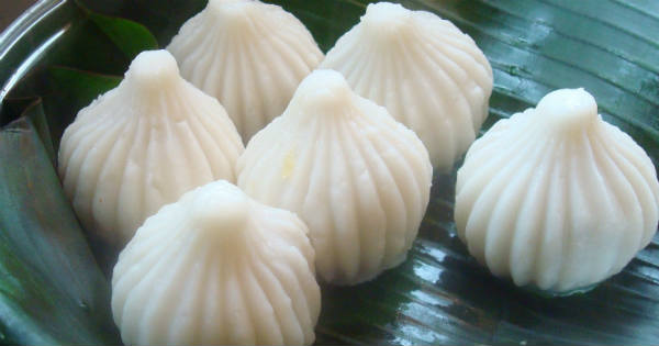 Rava means sooji or semolina and makes for an astounding external shell with a filling of your choice. Fillings may incorporate naturally ground coconut and jaggery or chana dal and jaggery. Try not to miss on the firm rava modaks as you may not be able to stop at just one.