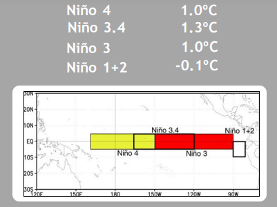 Collapse of positive anomalies in the eastern Pacific may be construed as waning of El Nino, commencing with the flanks. However, Nino 3.4 region, the principal measure for monitoring, assessing and predicting ENSO continue to hold strong and resist any drop in the temperature anomaly. Rather, it has risen to 1.3°C from its last week grade of 1.1°C. Barring Nino 1+2 region, rest all Nino indices have shown rise of temperature. It indicates that El Nino is not going to fade without the fight and may linger on till May 2024.