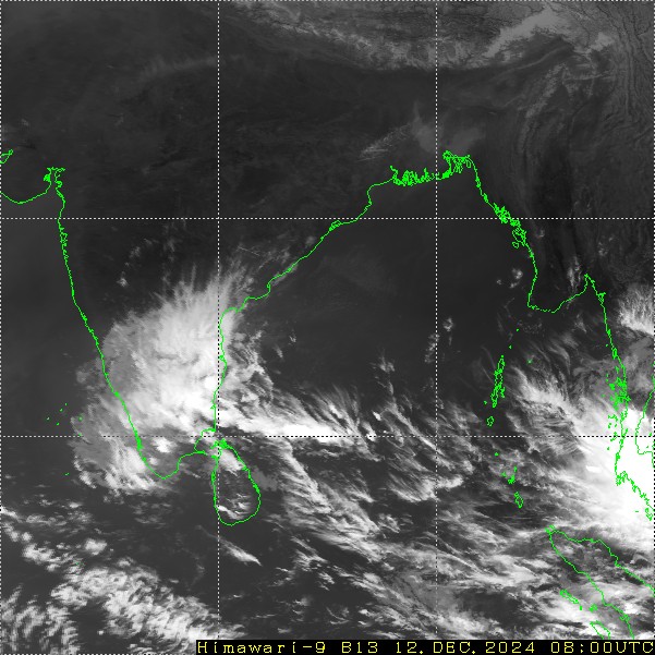 The well-marked low-pressure area over the Palk Strait- Gulf of Mannar has further moved eastward. The Northern half of Sri Lanka and the Tamil Nadu coastline has been battered with heavy to very heavy rains. The prominent locations with rainfall amounts were: Nungambakkam-74mm, Cuddalore-63mm, Tondi-63mm and Meenambakkam-58mm. Chennai and Delta region has braced the brunt of heavy weather during the past 24 hours. Chennai, Karaikal, Atiramapattinam and Nagappattinam continue to receive heavy rainfall today morning and forenoon hours.
