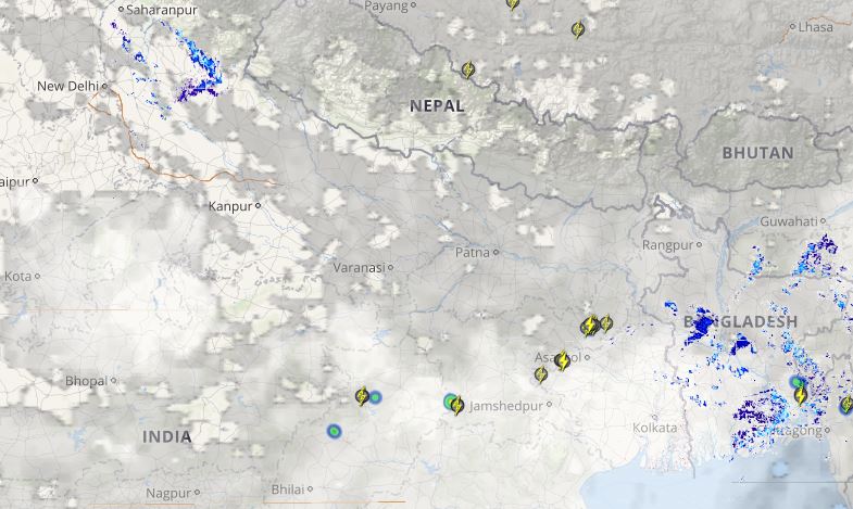बिहार और उत्तर प्रदेश में भीषण वर्षा जल्द शुरू हो सकती है। इन राज्यों में भी बाढ़ की आशंका। उत्तर प्रदेश में गोरखपुर से लखीमपुर खीरी तक, बिहार में चंपारण से सुपौल तक भीषण वर्षा होने की संभावना है। बारिश का यह प्रचंड प्रकोप जल्द ही बिहार के उत्तरी हिस्सों पर दिखेगा। अगले कुछ घंटों में उत्तर प्रदेश के तराई क्षेत्र भी भीषण मॉनसून वर्षा की चपेट में आ सकते हैं। समग्र भारत में गरज एवं बारिश वाले बादलों की ताज़ा स्थिति जानने के लिए नीचे दिए गए मैप परक्लिक करें।