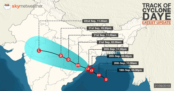 Updated on Sep 21, 2018 11 AM: चक्रवाती तूफ़ान ‘डे’ ओड़ीशा पर टकराने के बाद हुआ कमज़ोर; इस समय मध्य ओड़ीशा पर डिप्रेशन के रूप में मौजूद