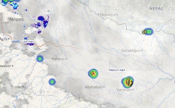 इस समय एक ट्रफ रेखा उत्तर प्रदेश के उत्तरी भागों में बनी हुई है। इसके प्रभाव से राज्य के कई इलाकों में अगले 24 घंटों के दौरान गरज के साथ वर्षा जारी रहने की संभावना है। हालांकि यह गतिविधियां लंबे समय के लिए नहीं बनी रहेंगी। कल से ट्रफ कमजोर हो जाएगी जिससे मौसम साफ और शुष्क हो जाएगा।गरज और वर्षा वाले बादलों की ताज़ा स्थिति जानने के लिए नीचे दिए गए मैप पर क्लिक करें।