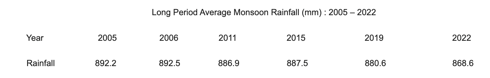 Long Period Average of southwest monsoon season is gradually lowering, except for one odd year in between. Between 2005 and 2022, the seasonal LPA has dropped from 892.5mm to 868.6mm. Till last year (2021), this seasonal figure was 880.6mm and a straight fall of 12mm to 868.6mm in 2022.